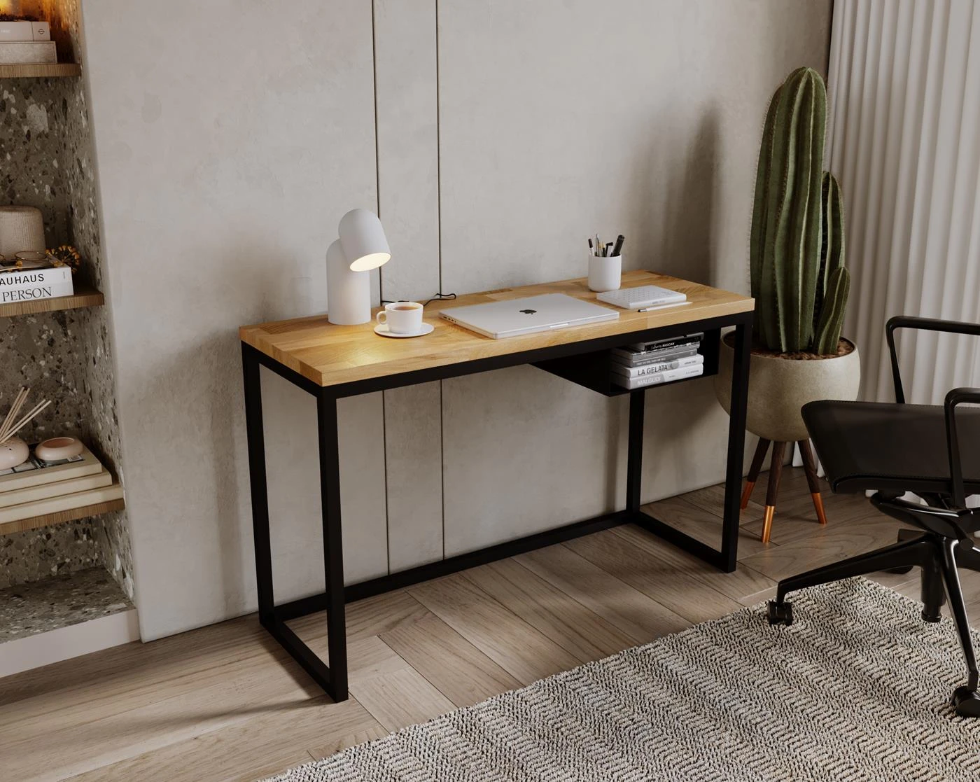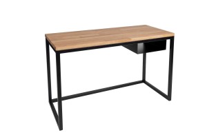 Nowoczesne, ręcznie wykonane biurko LIVIO 120x50, z drewnianym blatem i czarną, stalową podstawą, w stylu loft.