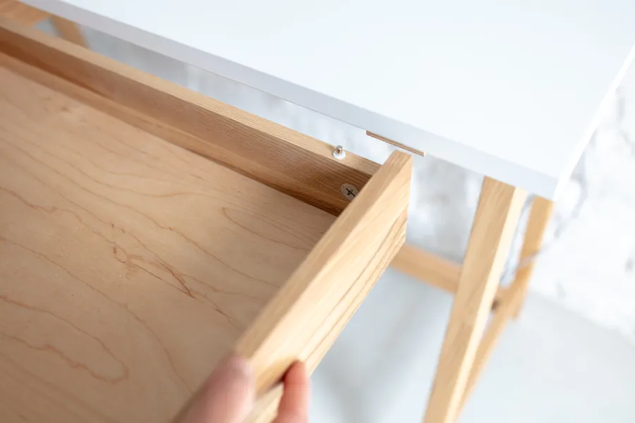 Biurko LUKA jest idealnym wyborem gdy chcesz stworzyć dobrze zorganizowane miejsce do pracy lub nauki. Mebel posiada dwie drewniane szuflady z wyjmowanym hamulcem bezpieczeństwa i otworem do organizacji kabli.