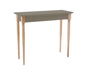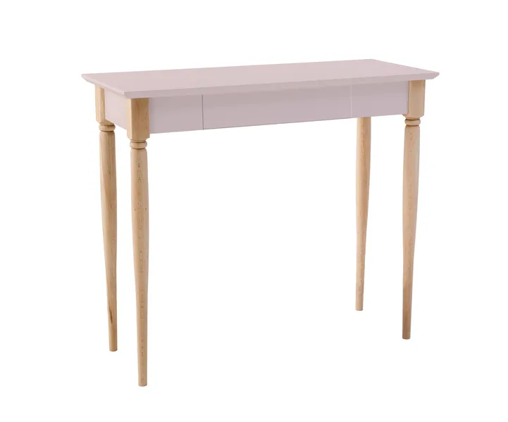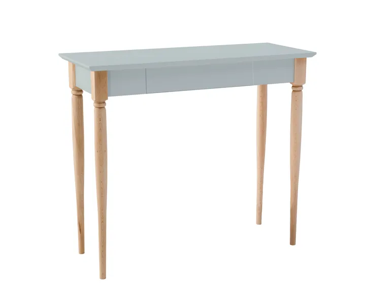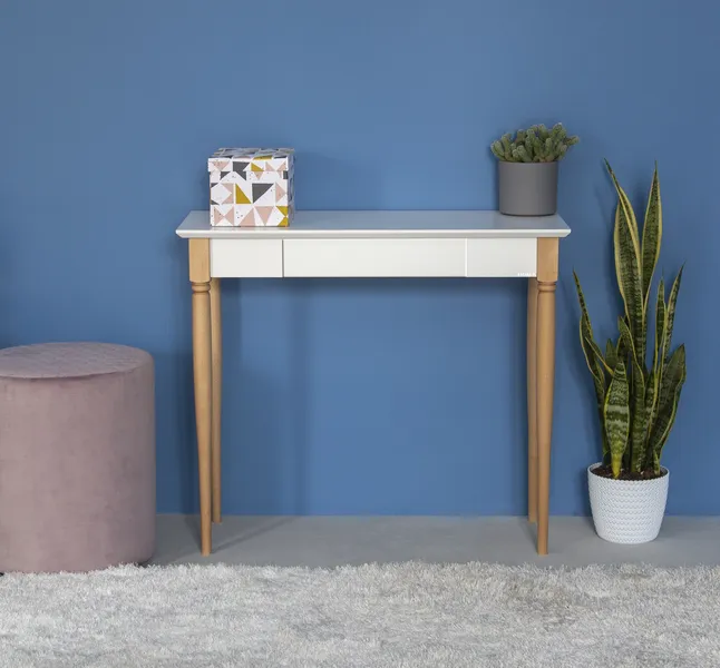 Duży blat powala na swobodną pracę, a funkcjonalności dodaje dyskretna szuflada do przechowywanie - idealnie rozwiązanie do domowego biura. Kolorowa płyta lakierowana w połączeniu z drewnianymi nogami dodaje uroku i ociepla wnętrze.