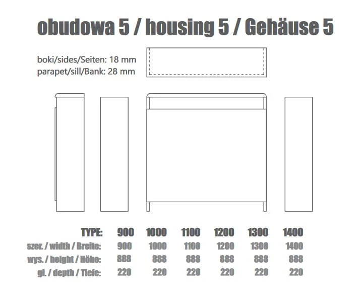 | 160 (wym. 160x70 cm w obudowie typ 5) | grzejnik szer. 140 x wys. 60 cm |