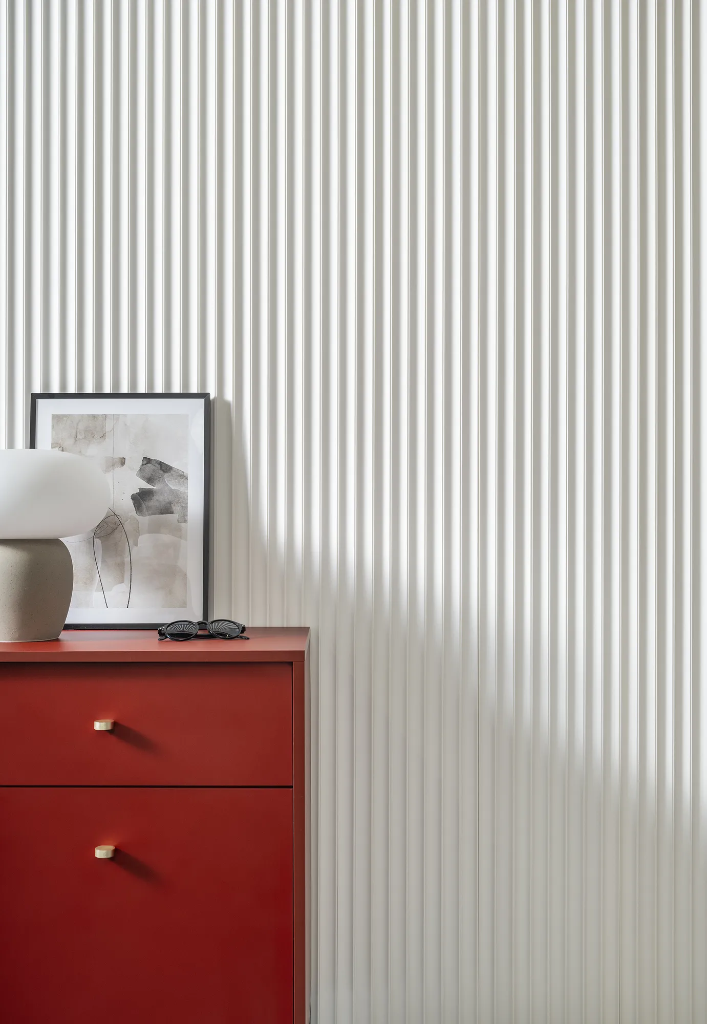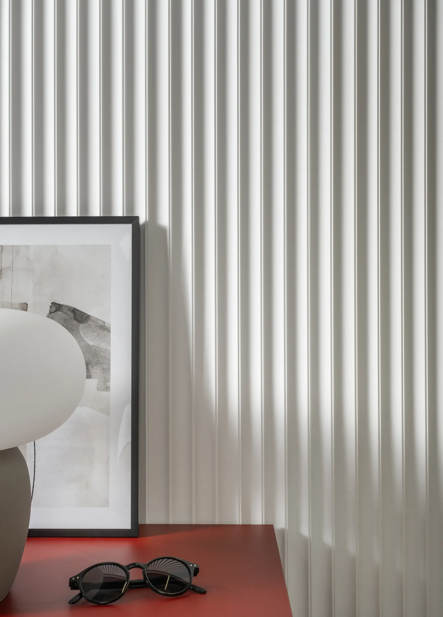 Lepsza akustyka we wnętrzuZastosowanie lameli znacznie redukuje hałasy we wnętrzu, eliminując echo oraz zmniejszając odgłosy kroków czy dudnienie. Dzięki nim wnętrza stają się wyraźnie bardziej komfortowe akustycznie.