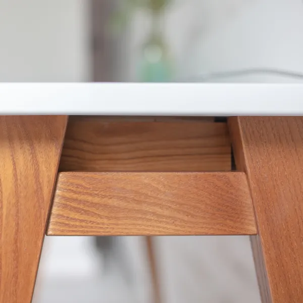 Biurko LUKA jest idealnym wyborem gdy chcesz stworzyć dobrze zorganizowane miejsce do pracy lub nauki. Mebel posiada dwie drewniane szuflady z wyjmowanym hamulcem bezpieczeństwa i otworem do organizacji kabli.