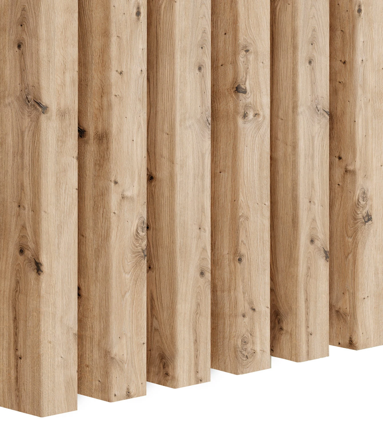 Lamele Premium 3D wykonane są z płyty MDF Plus - o podniesionej trwałości co jest gwarancją najwyższej jakości. Wykończone są dekoracyjną okleiną wysokiej jakości, która idealnie odwzorowuje strukturę drewna. Do wyboru masz aż 21 kolorów okleiny.