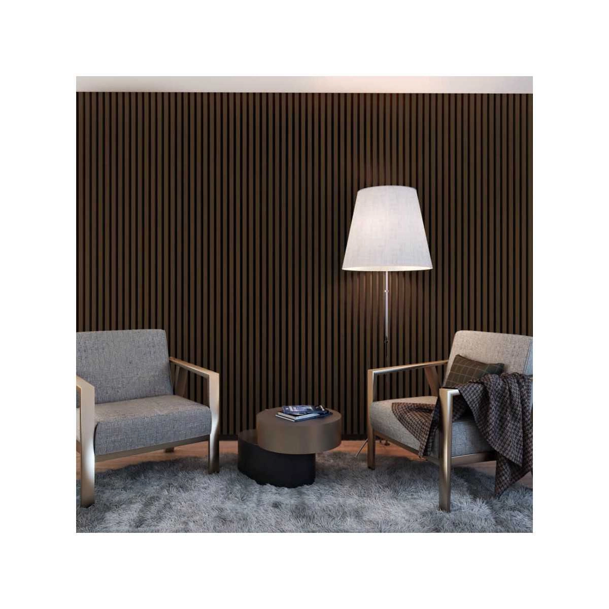 Panele na czarnym filcu z lamelami w odcieniu orzecha to eleganckie rozwiązanie, które dodaje wnętrzom wyrazistości i głębi. Ciemne tło i ciepły drewniany kolor orzecha sprawia, że całość prezentuje się niezwykle elegancko i jest propozycją do wyrafinowanych wnętrz. Doskonale sprawdzi się w salonie lub sypialni utrzymanych w męskim stylu, w eleganckim biurze, czy w loftowych lub klasycznych aranżacjach - stworzy tworząc przytulny, a zarazem luksusowy efekt. Wysoka jakość lameli i łatwy montaż klejem pozwalają na szybkie odmienienie przestrzeni.
