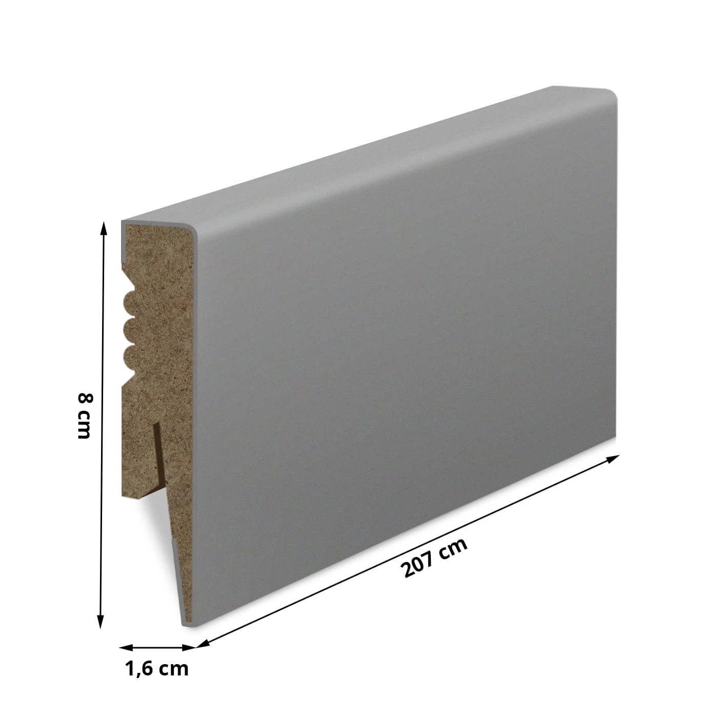 Listwa Przypodłogowa MDF - 8 cm - Szary - gładka