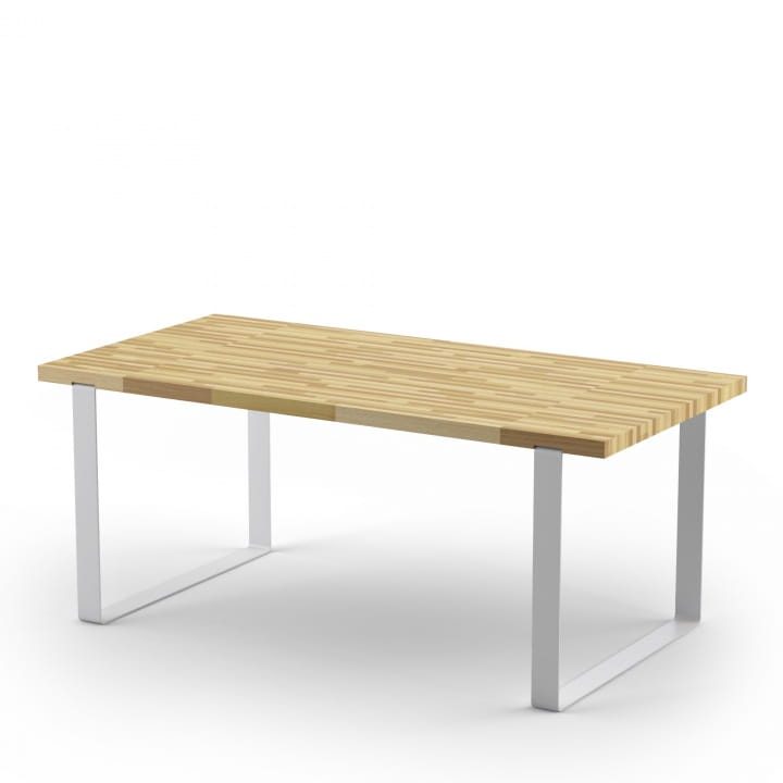 Nogi stołu są oferowane w kilku możliwościach do wyboru: naturalne drewno lub stal w śnieżnobiałym, albo grafitowym wybarwieniu.