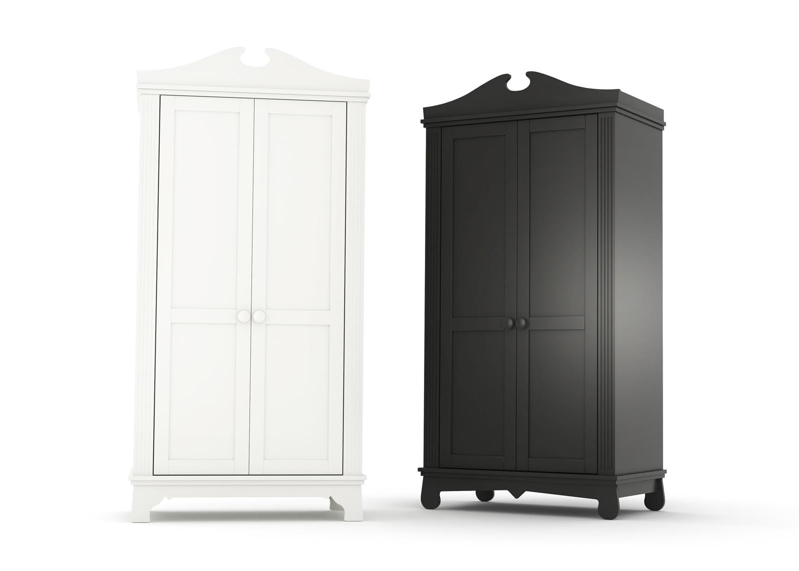 Szafa dwudrzwiowa to podstawa kolekcji mebli, pozwala na uporządkowanie przestrzeni dzięki swej pojemności. Wewnątrz szafy znajduje się drążek do powieszenia odzieży (rozpostarty na szerokość całej szafy) oraz dwie regulowane półki.